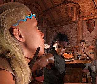 As part of the crew, Tharn and Crazy Arrow join a simple fishing hunt. Their expectations are shattered when a monstrous sea creature rises from the depths, refusing to be caught by any ordinary hook. The battle is fierce, chaotic, and thrilling… and when the beast finally falls, the two return to the ship as celebrated heroes. Posing proudly beside their catch, they barely have time to breathe before the celebration begins. Music, laughter, and rum spill across the deck as the crew honors their victory. But as the night grows warmer and wilder, the party shifts into something far more intimate.